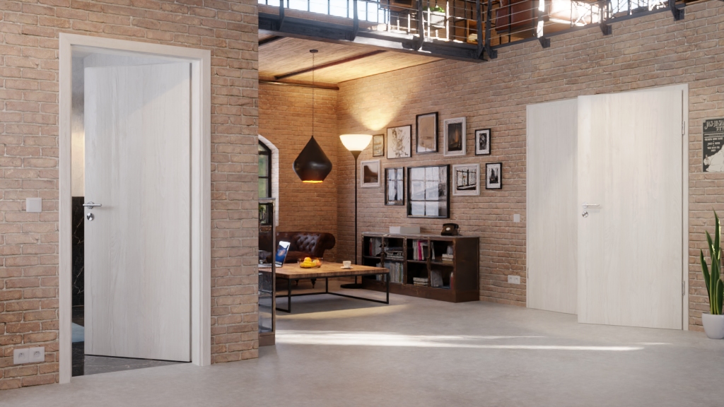 Drobne usłojenia i cieniowania nadają modelowi naturalny wygląd. Jednolita konstrukcja dwuskrzydłowego skrzydła drzwiowego i ościeżnicy zapewnia harmonię. Jasny kolor podstawowy nadaje skrzydłom drzwiowym przyjazny wygląd.