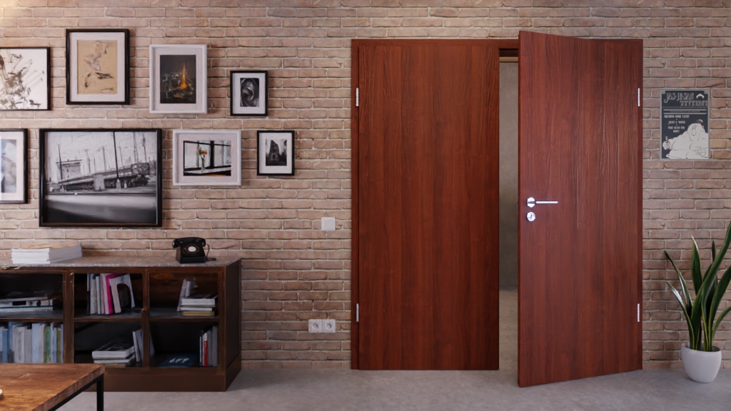 Niedrogie drzwi wewnętrzne dwuskrzydłowe: Drzwi dwuskrzydłowe 4.1 z powierzchnią CPL w kolorze orzecha włoskiego wraz z ościeżnicą firmy Classen idealnie dopasują się do wystroju Twojego salonu.