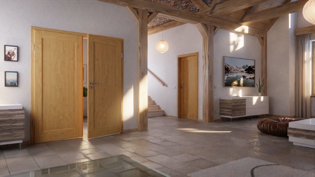 Stylowe drzwi skrzydłowe z litego drewna o grubości skrzydła około 40 mm: