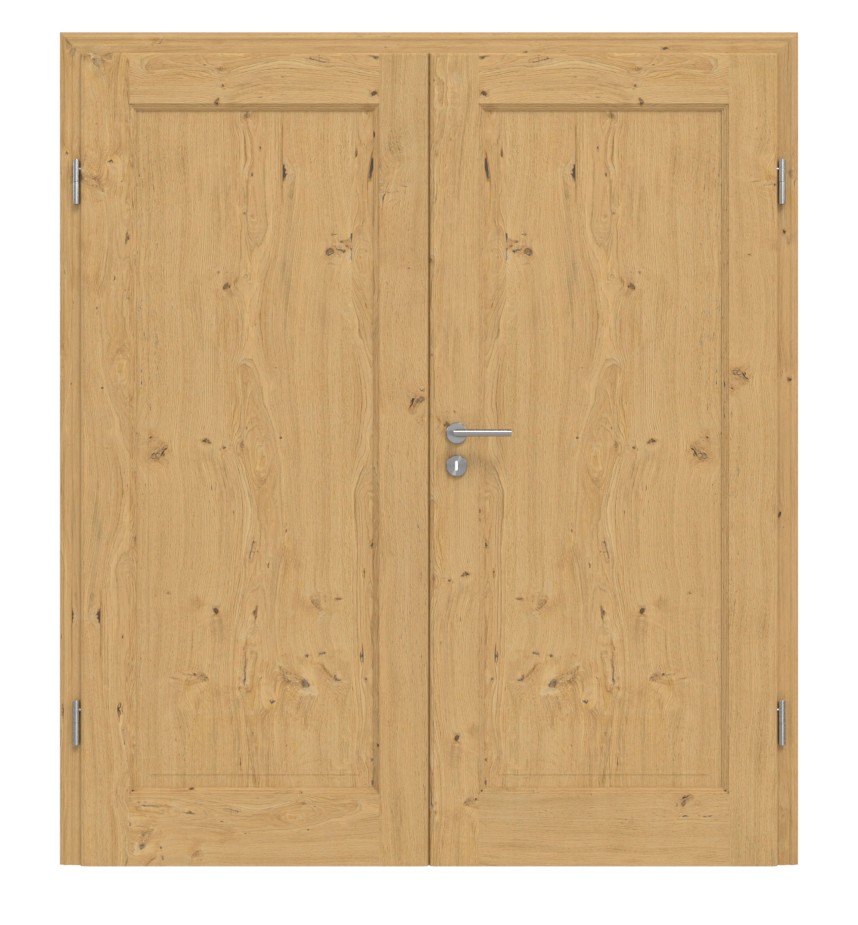 Stylowy i indywidualny: Podwójne skrzydło drzwi z litego drewna TE-1 w dębie z sękami jest wytwarzane przez doświadczonych stolarzy z dużą dbałością o szczegóły.