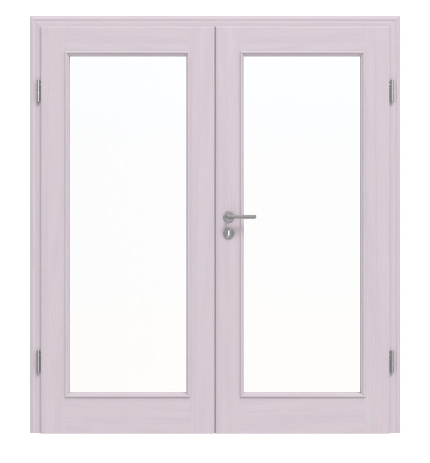 Szerokie fryzy i ozdobne listwy szklane elegancko otaczają duże przeszklenia. Delikatnie rysują się bezsęczne usłojenia sosny pod białą pigmentacją, nadając każdemu modelowi wyjątkowy, indywidualny charakter.