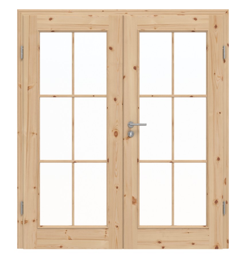 Bliskość natury na wyciągnięcie ręki: W drzwiach podwójnych z litego drewna TE-15 w sosnie sękatej harmonijne wzornictwo łączy się z solidną jakością prawdziwego drewna.