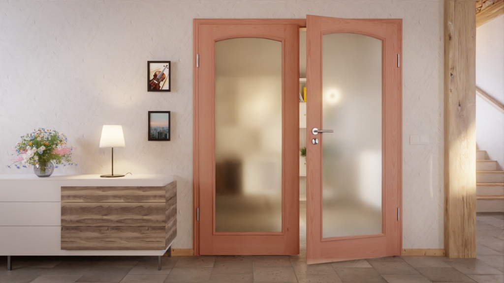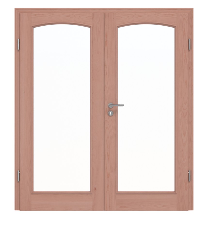 Dzięki dużym otworom świetlnym z eleganckimi łukami segmentowymi do wnętrza wpada przyjazne światło. Ozdobne listwy szklane i szerokie fryzy dopełniają klasyczny design. Typowe usłojenie drewna bukowego w każdej parze drzwi jest unikalne.