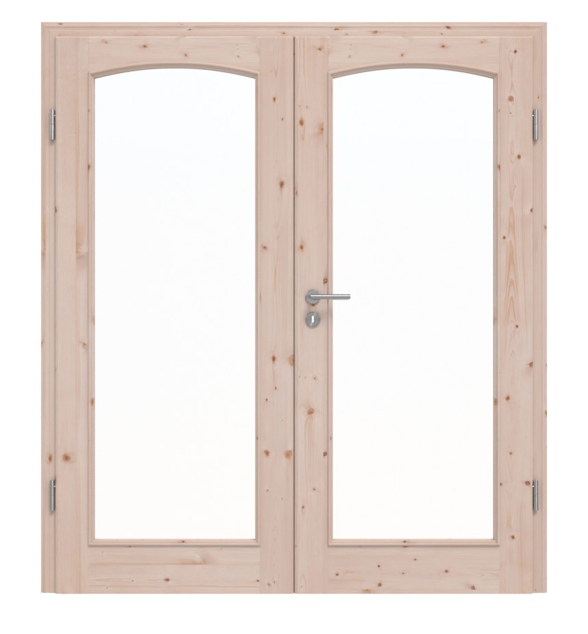 Dwa duże otwory szklane z łukami segmentowymi wpuszczają dużo światła do Twoich pomieszczeń. Szerokie fryzy są stylowo podkreślone przez ozdobne listwy szklane. Dynamika usłojenia zdobi drewno sosnowe, czyniąc każde drzwi unikalnym dziełem sztuki.