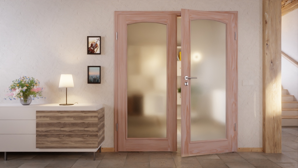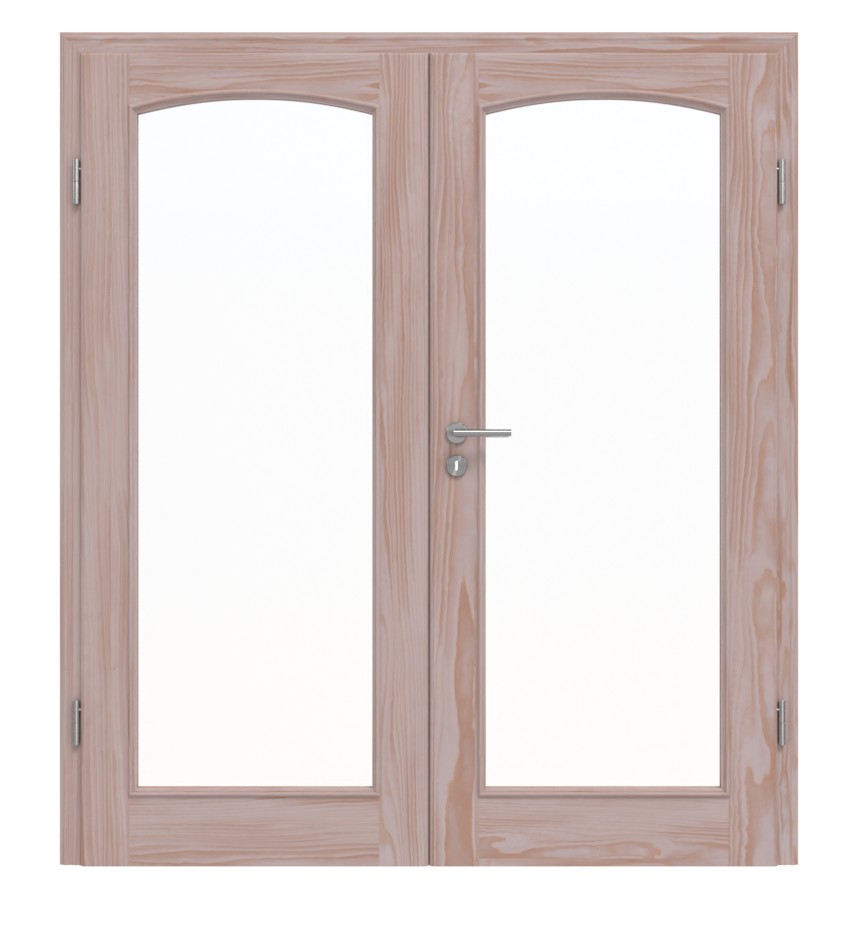 Dwa duże otwory szklane z łukami segmentowymi wpuszczają do Twoich pomieszczeń mnóstwo światła. Szerokie fryzy są stylowo podkreślone przez ozdobne listwy szklane. Dzięki zawsze indywidualnie przebiegającej słojowości drewna sosnowego każde drzwi zyskują unikalny charakter.