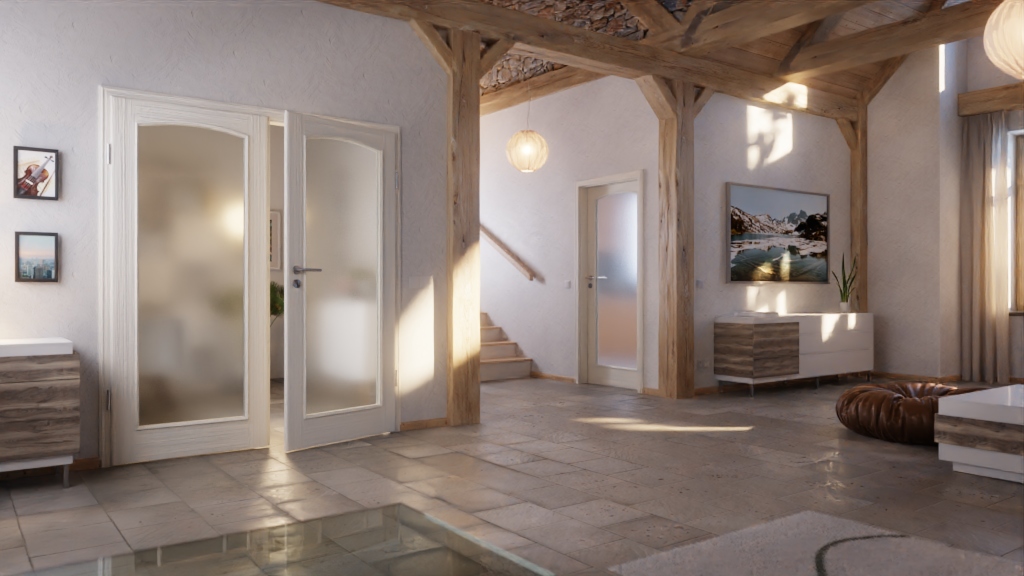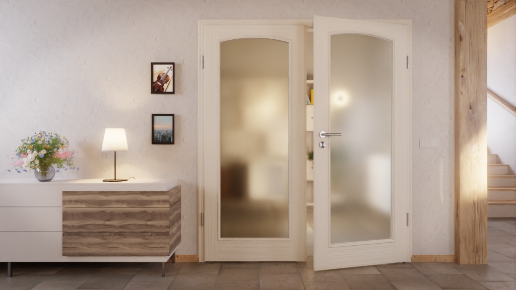 Harmonijne drzwi podwójne z naturalnie rosnącego drewna w konstrukcji warstwowo klejonej: