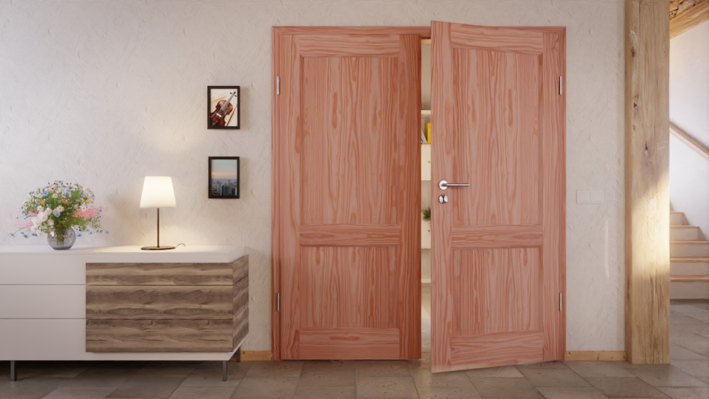 Styl wie w wiejskim domu spotyka tradycyjne rzemiosło: W drzwiach podwójnych z litego drewna TE-2 z modrzewia doskonała jakość wykonania łączy się z ponadczasowym designem.