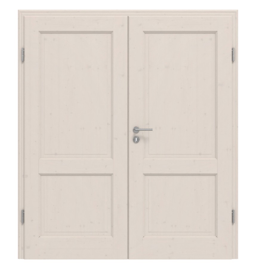 Duża rozwiązanie drzwiowe dla dużych przejść: W drzwiach podwójnych z litego drewna TE-2 z sosny sękatej harmonijne wzornictwo łączy się z solidną jakością prawdziwego drewna.