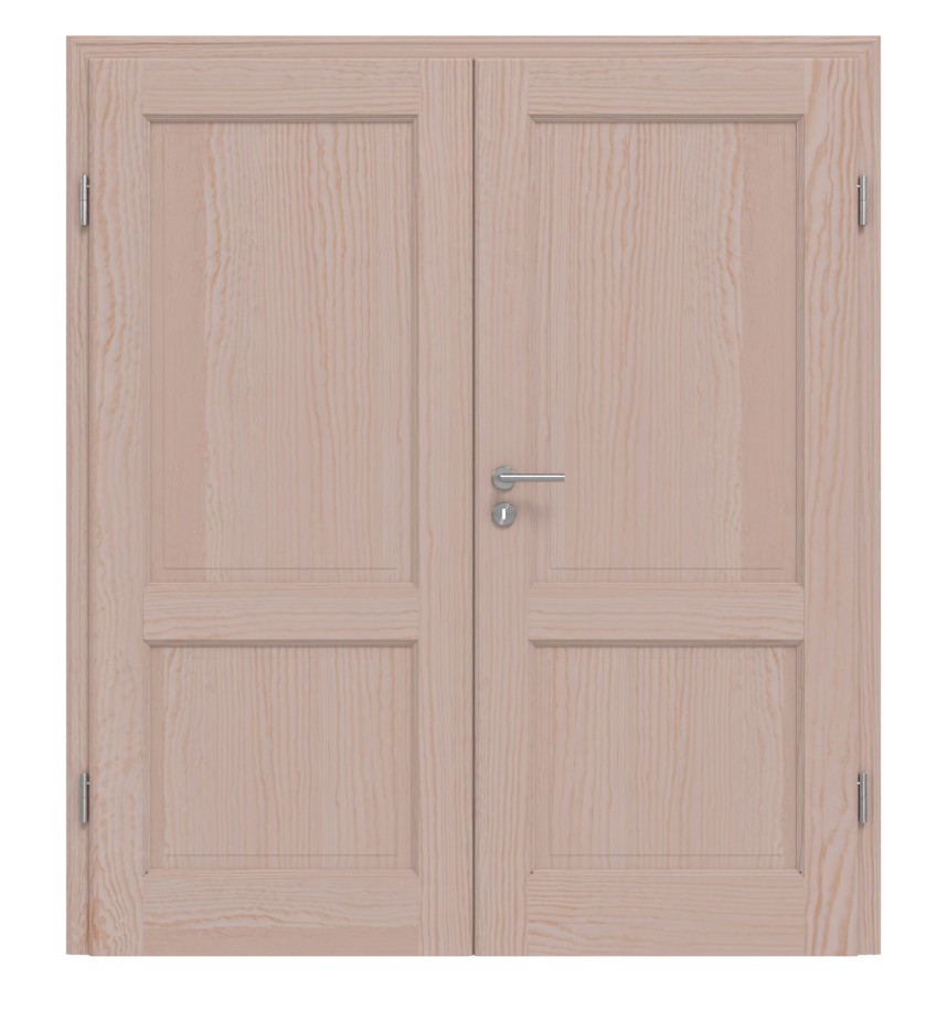 Szerokość, ozdobne fryzy otaczają profilowane wypełnienia, które zdobią oba skrzydła drzwi. Bezsękowe usłojenie przechodzi przez drewno sosnowe, co sprawia, że każde drzwi są unikalnym dziełem sztuki.