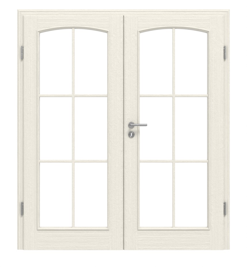 Stylowe drzwi podwójne wewnętrzne z drewna litego wraz z ościeżnicą: