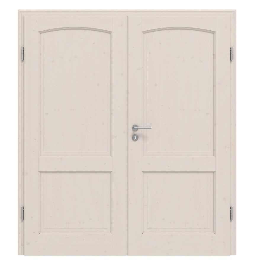 Rzemiosło artystyczne spotyka naturalne materiały: Urokliwa podwójna drzwi z litego drewna TE-27 w świerku sękatym łączy precyzyjną jakość wykonania z wyważonym designem.
