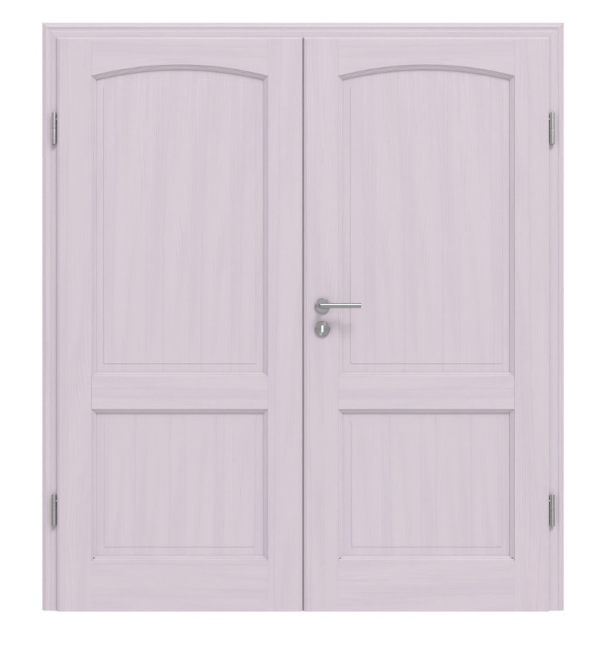 Cztery wyodrębnione wypełnienia z prawdziwego drewna nadają modelowi klasyczny charakter. Eleganckie detale, takie jak łuki segmentowe i zdobione profile fryzowe, wprowadzają umiejętne akcenty. Dzięki białej pigmentacji delikatnie uwydatniają się bezsęczne usłojenia sosny.