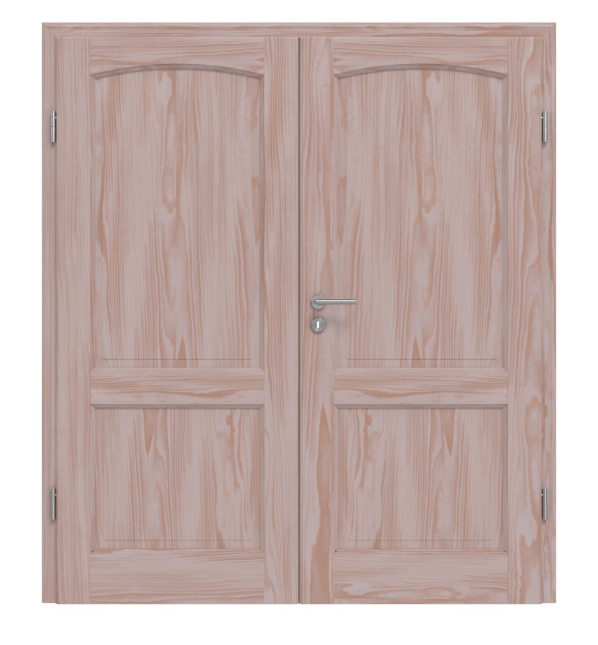 Drzwi prezentują się elegancko z dwiema eleganckimi wypełnieniami z prawdziwego drewna, łukiem segmentowym i stylowymi profilowaniami. W bezsęcznym drewnie sosnowym widoczne są charakterystyczne słoje.