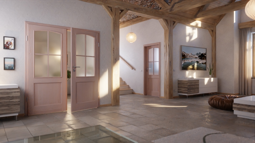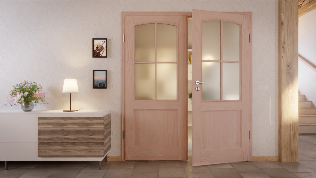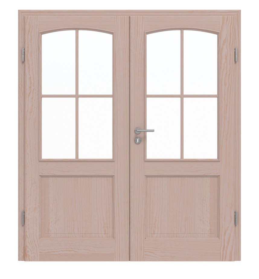Drzwi wewnętrzne podwójne z naturalnego drewna z ościeżnicą: