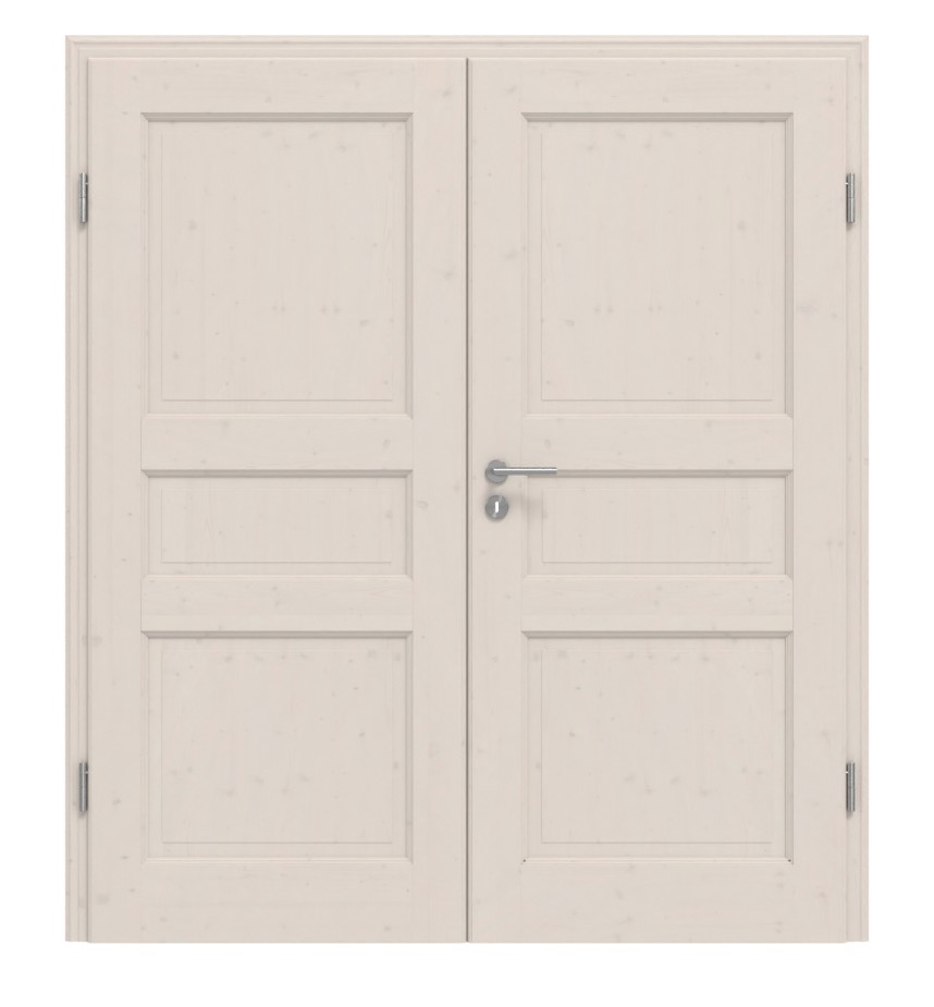 Stylowy aż do najmniejszego włókna drewna: Podwójne skrzydło drzwi z litego drewna TE-3 z sosny bezsęcznej zachwyca zrównoważonym designem i wysoką jakością.