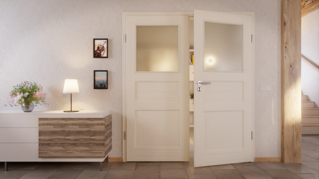 Eleganckie drzwi podwójne z drewna litego w konstrukcji warstwowo klejonej: