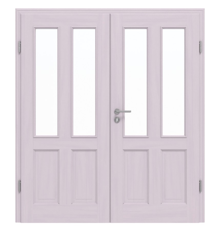 Stylowe drzwi wewnętrzne podwójne z naturalnego drewna o grubości skrzydła 40 mm: