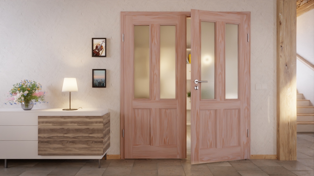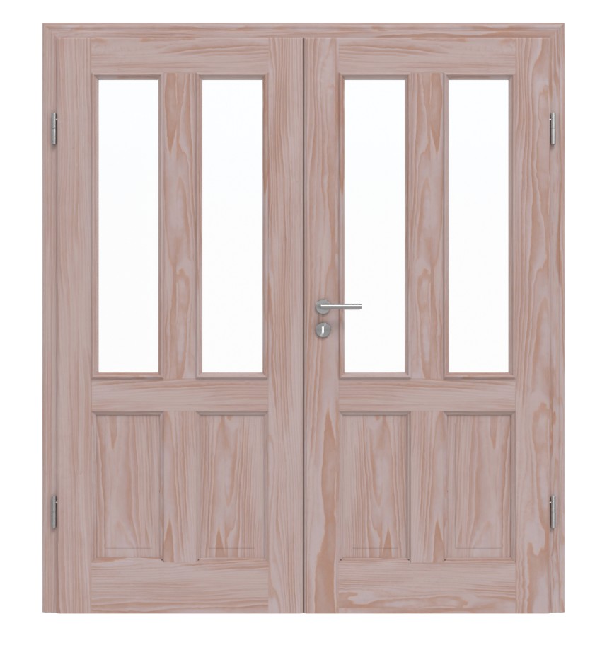 Stylowe drzwi podwójne z litego drewna z ościeżnicą: