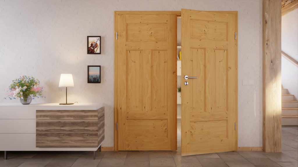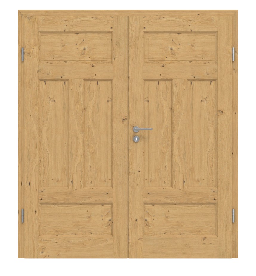Trwałe drzwi podwójne z litego drewna o grubości skrzydła drzwiowego około 40 mm: