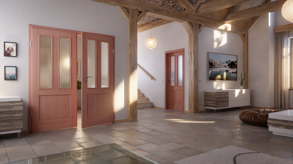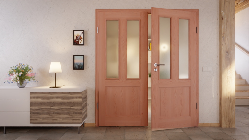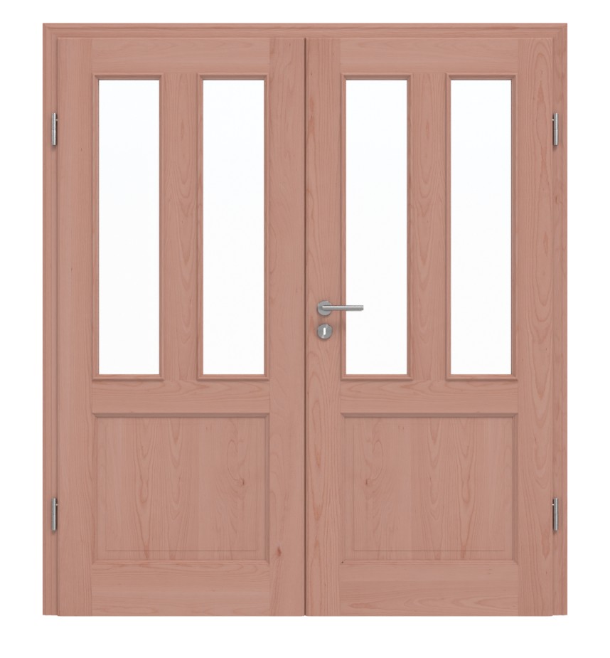 Drzwi wewnętrzne podwójne z litego drewna z ościeżnicą: