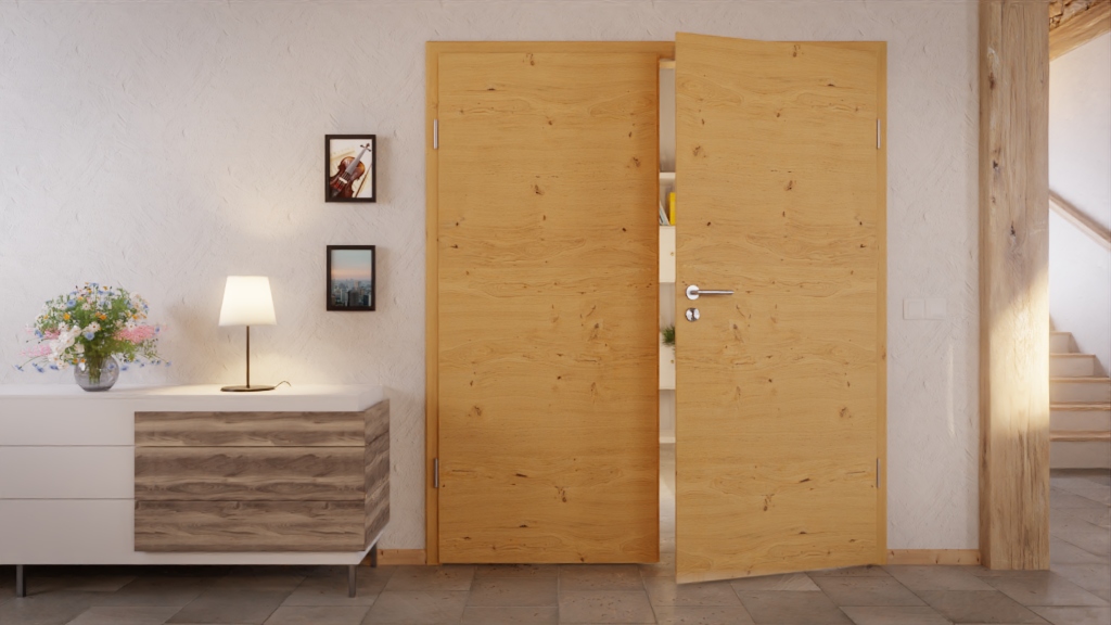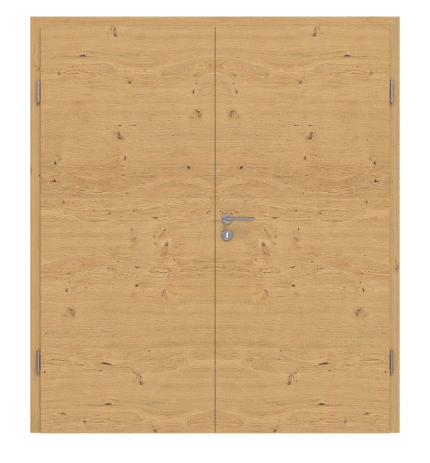 Dla wielkiego występu: W drzwiach podwójnych z litego drewna TG-1 w dębie sękatej łączą się harmonijny design i solidna jakość prawdziwego drewna.