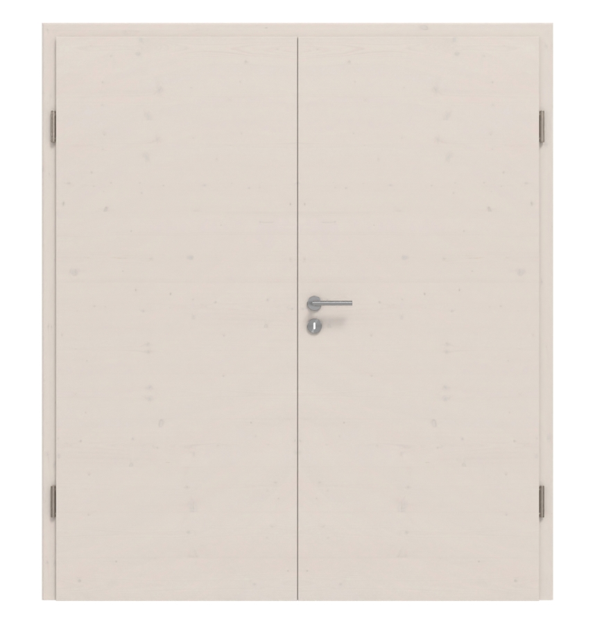 Naturalny, indywidualny i ponadczasowo piękny: Gustowna drzwi podwójne z litego drewna TG-1 w białym pigmentowanym świerku z sękami oferuje minimalistyczny design w najlepszej jakości wykonania.