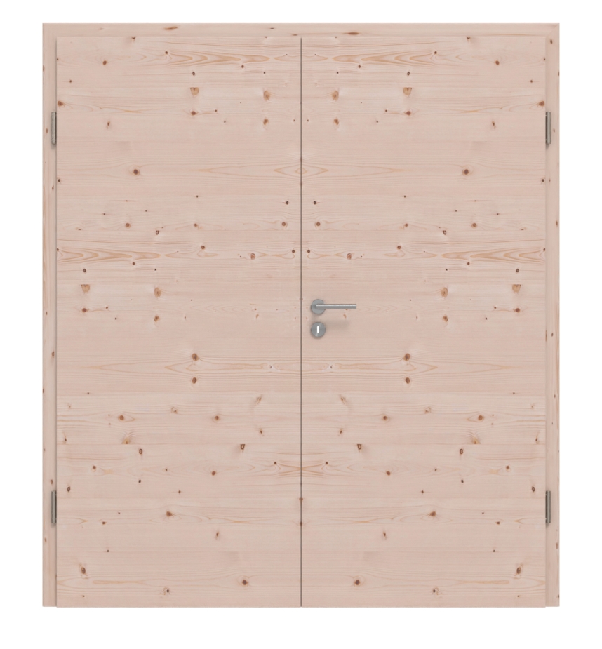 Naturalny unikat: Drzwi podwójne z litego drewna TG-1 w świerku sękatym wprowadza przytulną atmosferę do pomieszczenia.