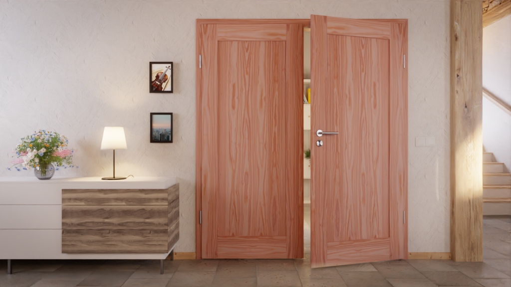 Zanurz się w świat drzwi z litego drewna dzięki tym podwójnym drzwiom i doświadcz najlepszego klimatu mieszkalnego, zrównoważonego rozwoju na wyciągnięcie ręki oraz przestrzennego designu w jednym!