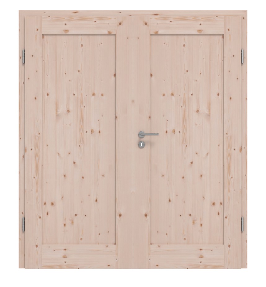 Rękodzieło spotyka naturalne materiały: Podwójne skrzydło drzwi z litego drewna TE-1 z sosny jest starannie wykonane przez doświadczonych rzemieślników.