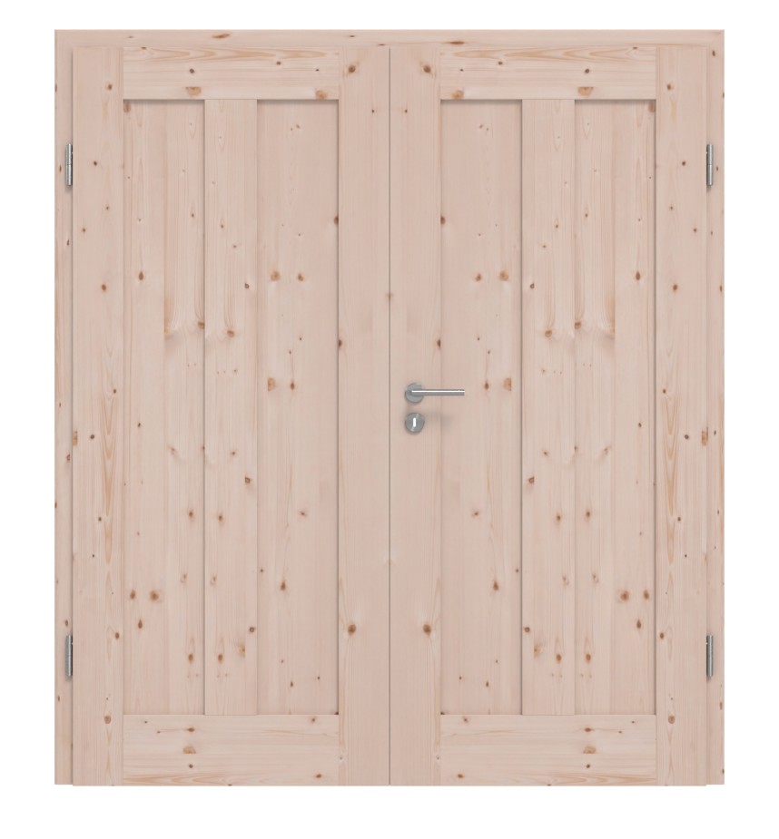 Rzemiosło artystyczne spotyka naturalne materiały: Nowoczesne drzwi podwójne z litego drewna TE-10 z sosny sękatej łączą wiejski urok z miejskim stylem.