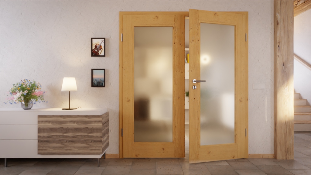 Wejdź w świat drzwi z litego drewna dzięki tym podwójnym drzwiom i doświadcz najlepszego klimatu mieszkalnego, zrównoważonego rozwoju na wyciągnięcie ręki oraz przestronnego designu w jednym!