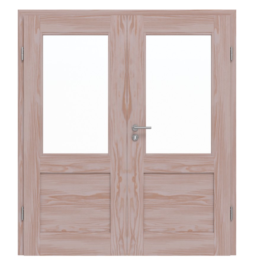 Czysta naturalność: Podwójne skrzydło drzwi z litego drewna TE-16 z sosny bezsękowej zachwyca eleganckimi detalami i wysoką jakością.