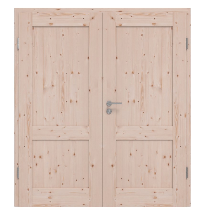Zainspirowana stylem Bauhaus: Podwójne skrzydło drzwi z litego drewna TE-2 z sosny bezsękowej jest wytwarzane przez doświadczonych stolarzy z dużą dbałością o szczegóły.