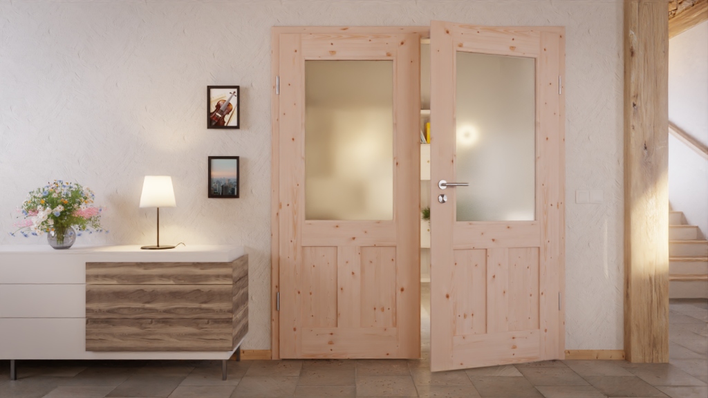 Bliskość natury na wyciągnięcie ręki: Nowoczesne drzwi podwójne z litego drewna TE-21 z sosny łączą precyzyjną jakość wykonania z zrównoważonym designem.