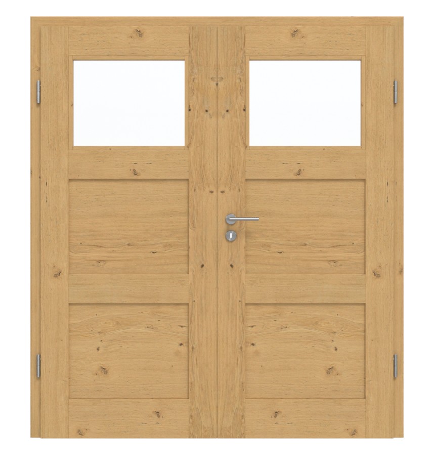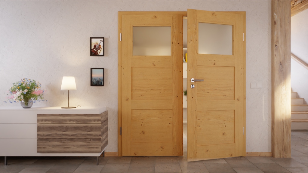Naturalny, indywidualny i ponadczasowo piękny: Nowoczesne podwójne drzwi z litego drewna TE-31 z dębu łączy precyzyjna jakość wykonania z zrównoważonym designem.