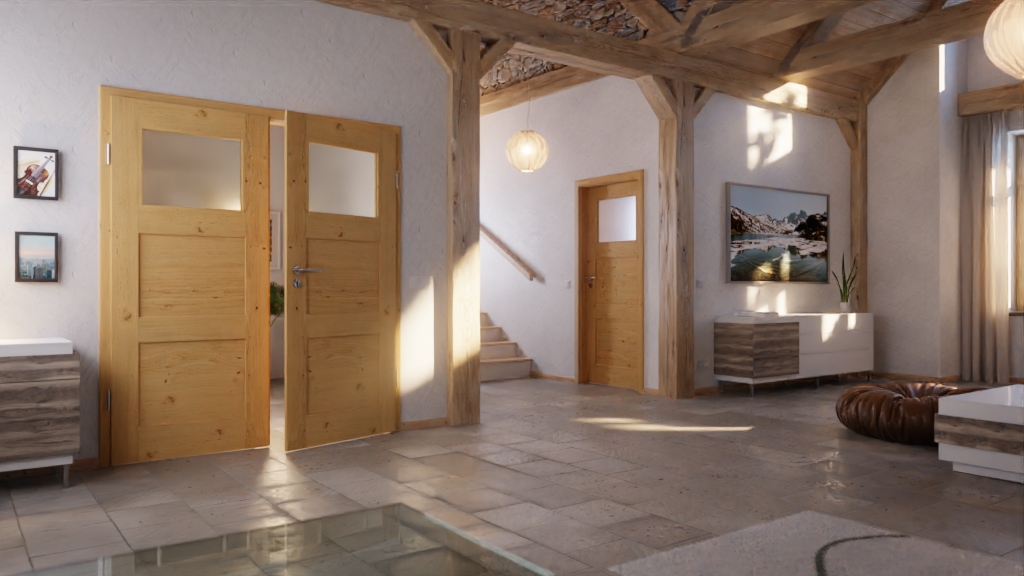 Drzwi z litego drewna klejone warstwowo charakteryzują się szczególnie wysoką stabilnością. Nie może również zabraknąć idealnego wykończenia. Wybierz zatem w menu konfiguracyjnym odpowiednią dla siebie obróbkę powierzchni.