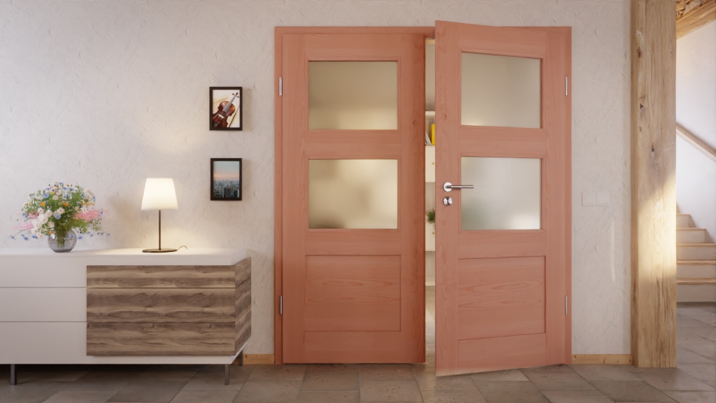 Stabilne podwójne drzwi wewnętrzne z litego drewna w konstrukcji klejonej: