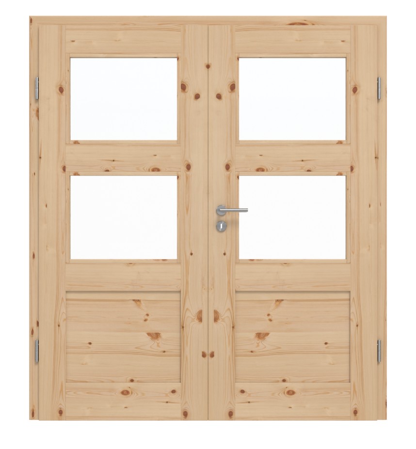 Precyzyjnie wykonane podwójne drzwi z naturalnie rosnącego drewna o grubości skrzydła drzwiowego 40 mm: