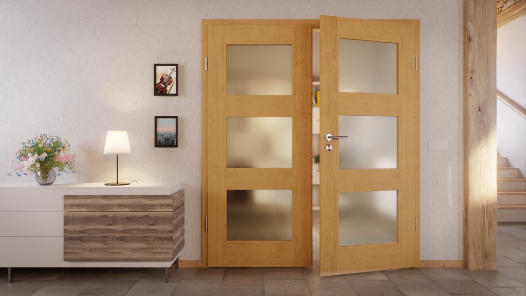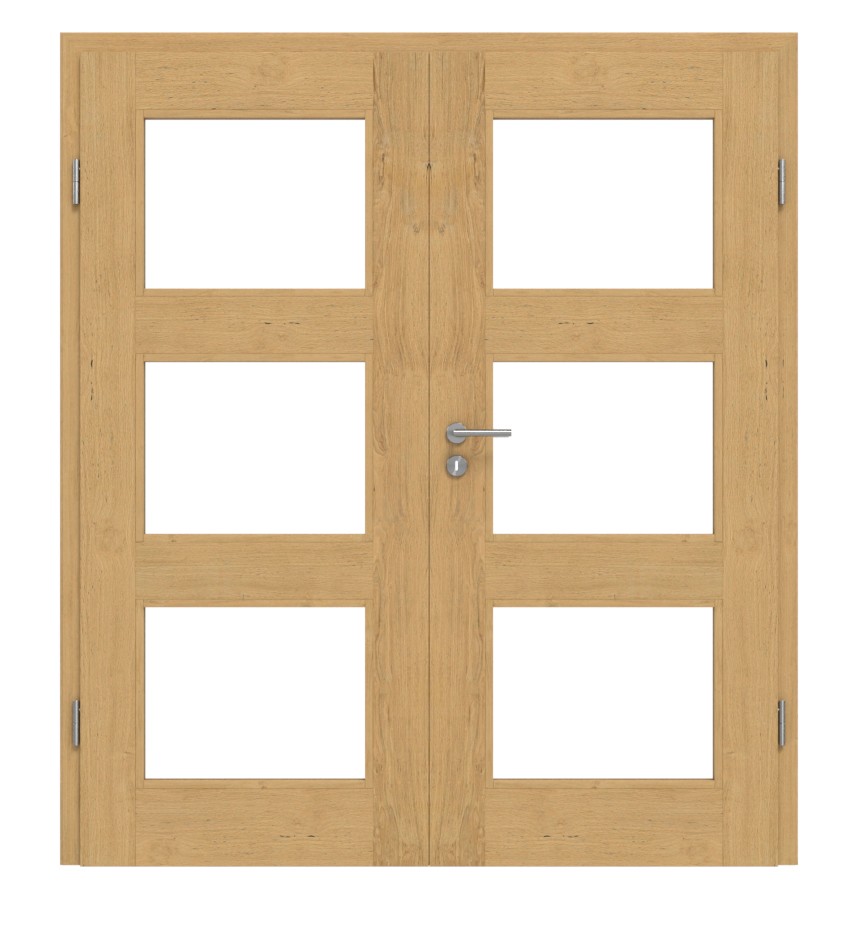 Naturalny, indywidualny i ponadczasowo piękny: Nowoczesne podwójne drzwi z litego drewna TE-33 z dębu łączy wiejski urok z miejskim stylem.