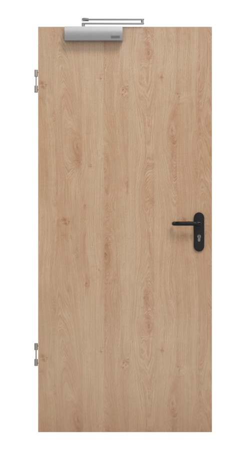 Model ten tłumi ogień przez 30 minut i jest produkowany zgodnie z niemieckimi wymaganiami według DIN 4102-5 (DIN EN 1634-1). Drzwi przeciwpożarowe standardowo wyposażone są w klamki, samozamykacze, zawiasy i zamek PZ.