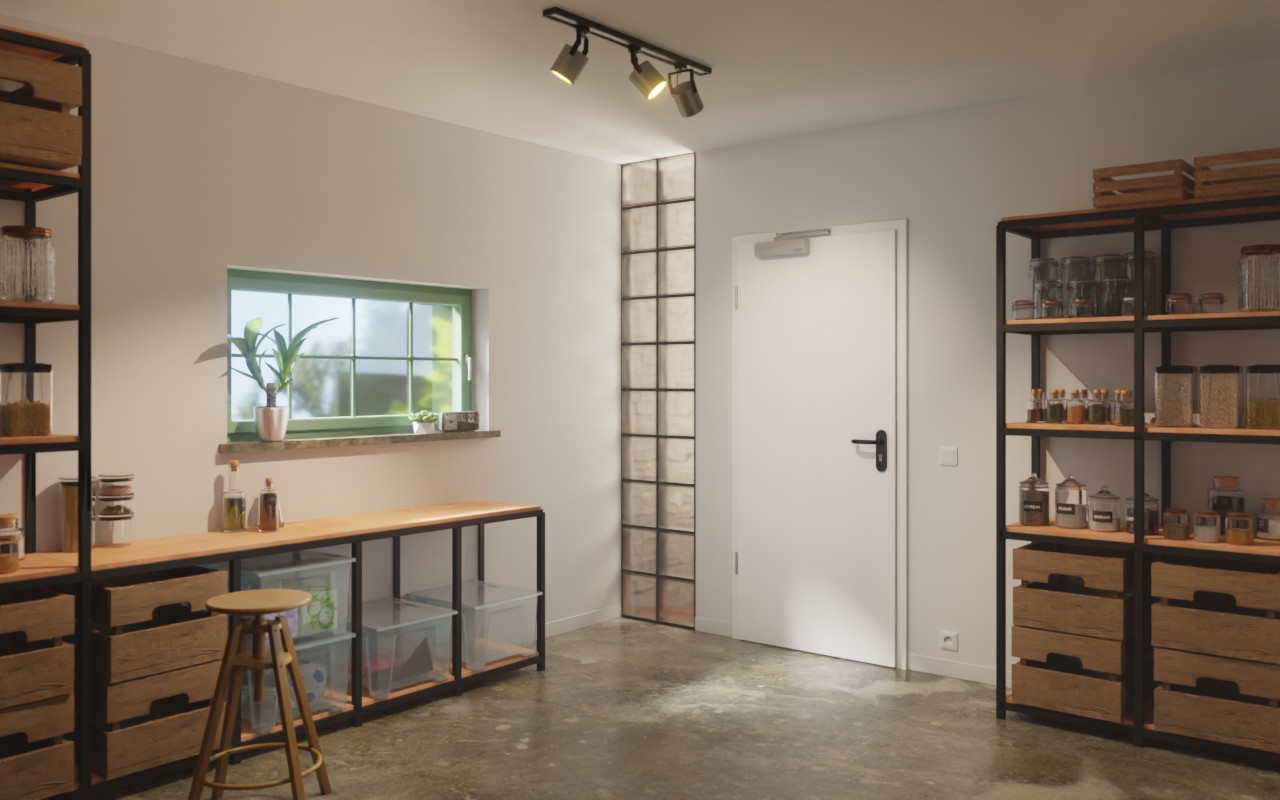 Drzwi ze specjalną wkładką przeciwpożarową i gładkim skrzydłem drzwiowym zapewniają prosty wygląd. Odporna na uderzenia warstwa wierzchnia CPL jest ponadto łatwa w czyszczeniu.