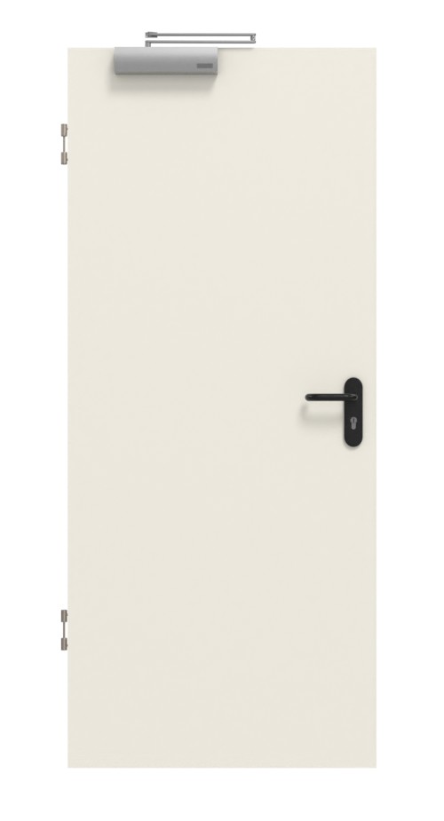 Dzięki klasie odporności ogniowej T-30 model ten wytrzymuje ogień nawet przez pół godziny. Ponadto drzwi są produkowane zgodnie z niemiecką normą bezpieczeństwa DIN 4102-5 (DIN EN 1634-1). Zestaw klamek, zamek, samozamykacz drzwiowy i zawiasy stanowią standardowe wyposażenie drzwi przeciwpożarowych.
