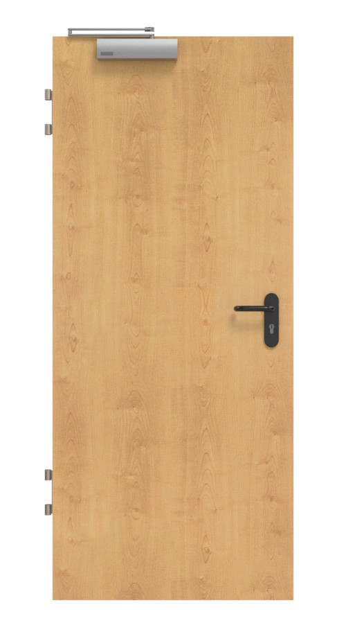 Wraz z drzwiami przeciwpożarowymi w zestawie znajduje się m.in. zestaw klamkowy oraz górny mechanizm zamykający. Certyfikat testowy otrzymasz przy zamówieniu odpowiedniej ościeżnicy przeciwpożarowej.