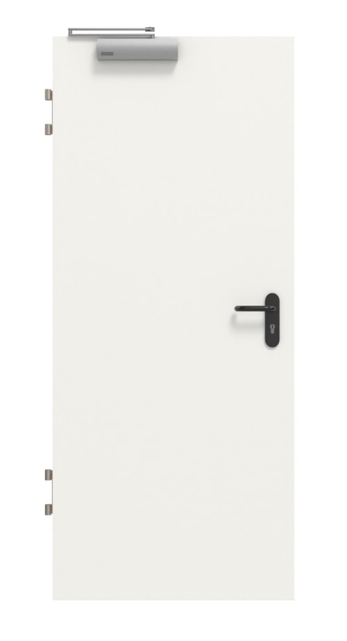 Do skonfigurowanych drzwi przeciwpożarowych należą między innymi zamki górne oraz zawiasy. Jeśli potrzebujesz certyfikatu, wymagana jest odpowiednia ościeżnica przeciwpożarowa.