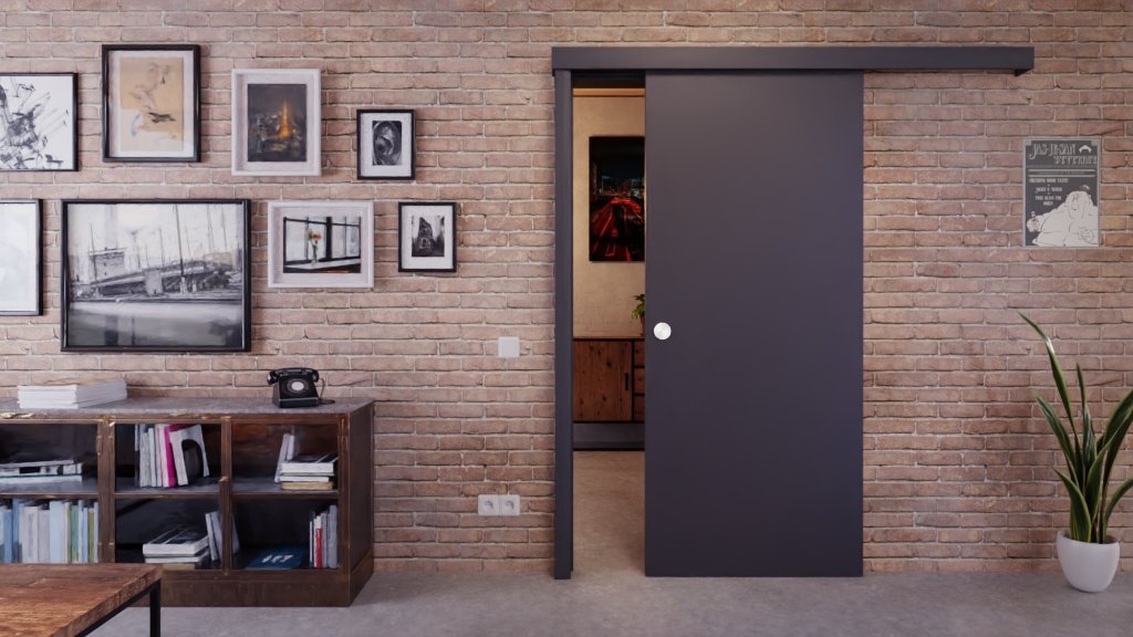Robustne drzwi przesuwne w kolorze grafitowym podobnym do RAL 7024: