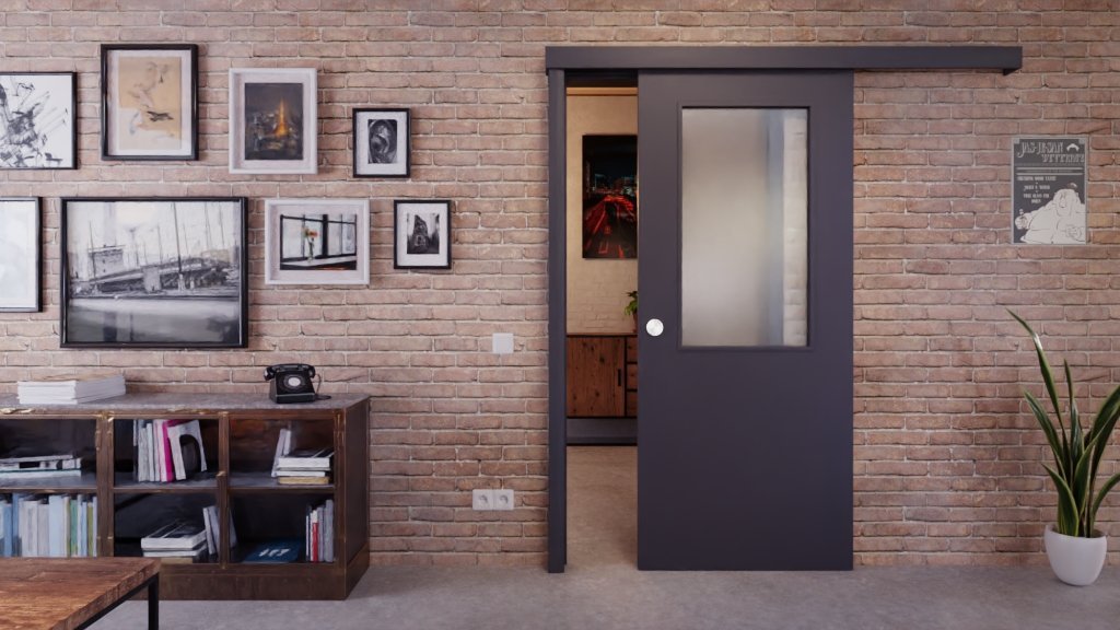 Praktyczne drzwi przesuwne w grafitowym kolorze podobnym do RAL 7024: