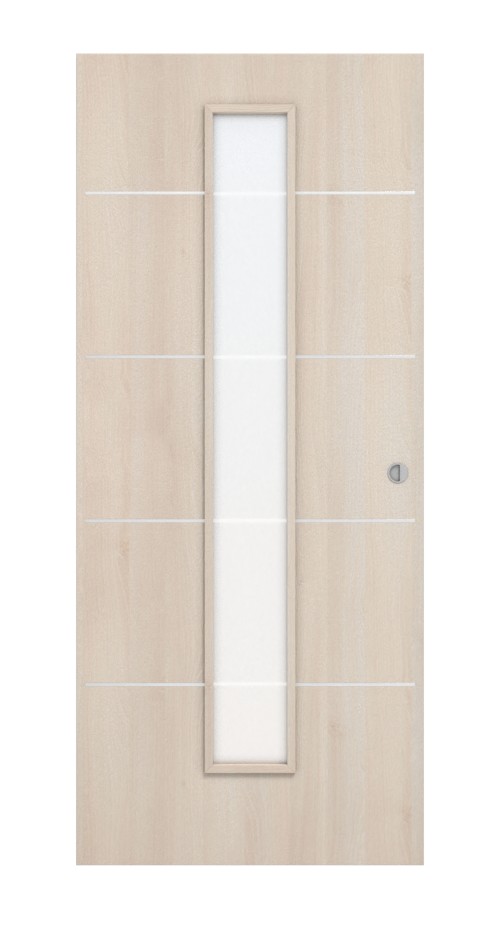 Połączenie jasnego dekoru w kolorze akacji z centralnym, wąskim przeszkleniem zapewnia przyjazną atmosferę w pomieszczeniu. Szkło jest już wliczone w cenę.