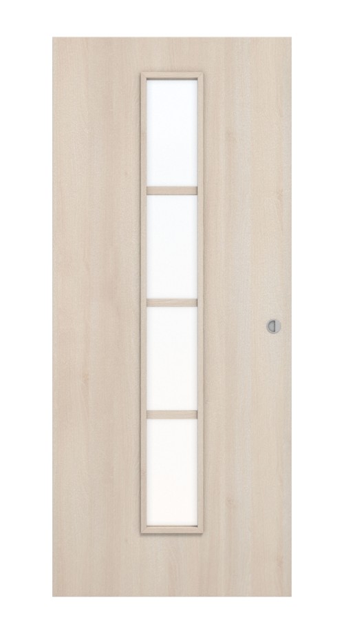 Połączenie jasnego dekoru w kolorze akacji z centralnym, wąskim przeszkleniem zapewnia przyjazną atmosferę w pomieszczeniu. Istnieje wybór między szkłem przezroczystym a satynowanym.