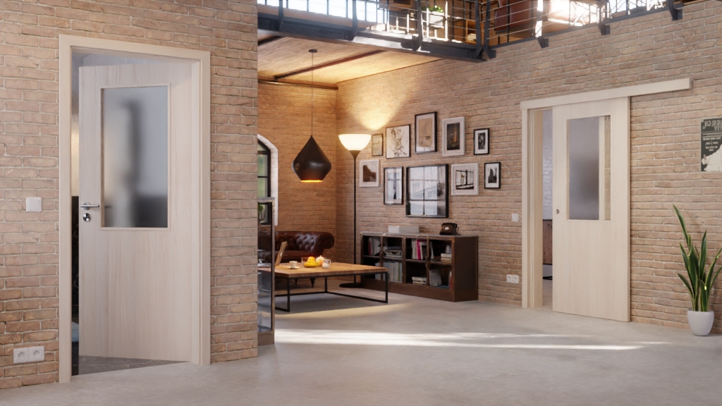 Połączenie przeszklenia i dekoru akacjowego nadaje drzwiom nowoczesny, a jednocześnie ciepły wygląd. W przypadku szklenia możesz wybierać pomiędzy wykonaniem przezroczystym a satynowanym.