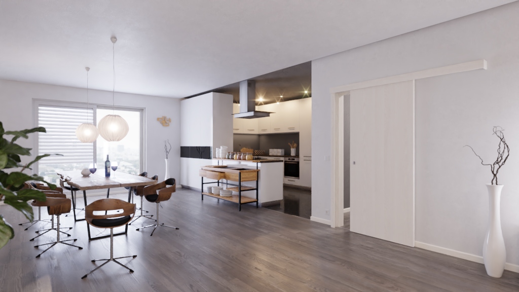 Komfortowy i wygodny w obsłudze: Wybierając drzwi przesuwne 4.15 w kolorze Białej Jesionu, zyskujesz większą swobodę ruchu i komfort w swoim domu - i to w cenie na start.
